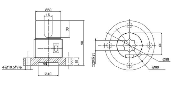 靜態(tài)扭矩測量。一端為鍵(或內(nèi)四方鍵)連接,一端為法蘭盤連接.