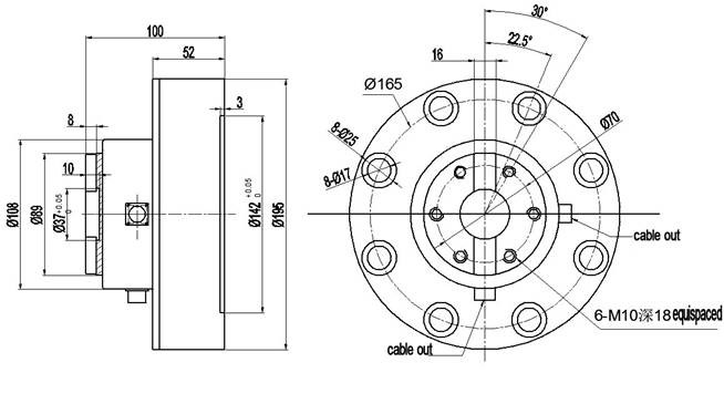 雙量程靜態(tài)扭矩測量。一端為鍵法蘭連接,一端為法蘭盤連接。