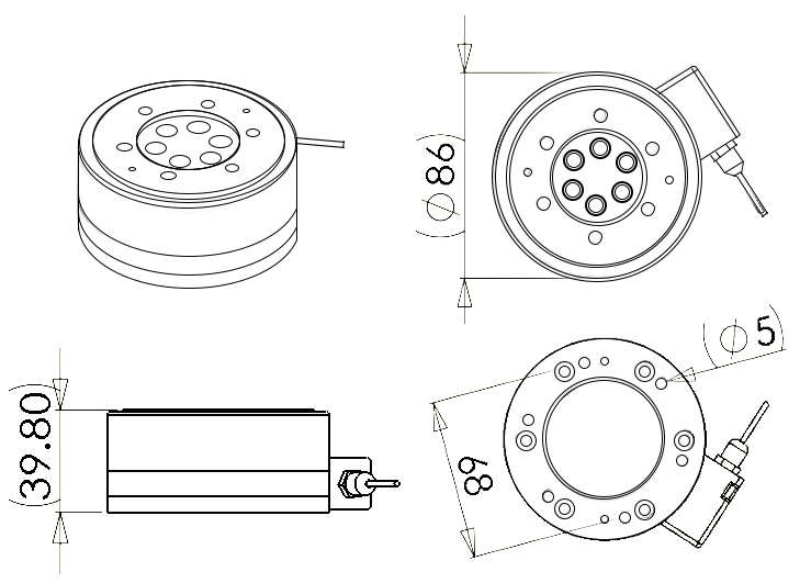 量程: Fx/Fy/Fz:100/200/500/1000/2000N Mx/My/Mz:1/2/5/10/20Nm(可提供定制)
