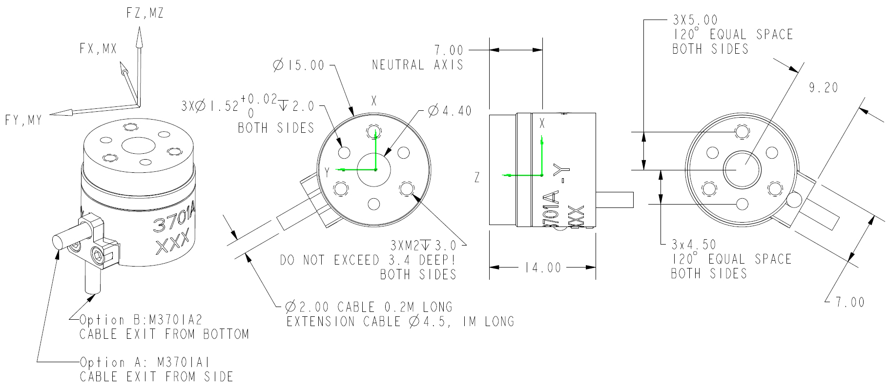 尺寸(mm):(Fx/Fy/Fz :50/50/100N Mx/My/Mz :0.5/0.5/0.5Nm )直徑:15mm