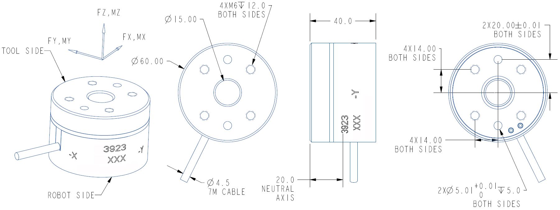 尺寸(mm):(Fx/Fy/Fz :2700/2700/5400N Mx/My/Mz :120/120/96Nm)Diameter :60mm